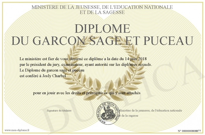 Envoyez par email votre Diplôme du garcon sage et puceau personalisé