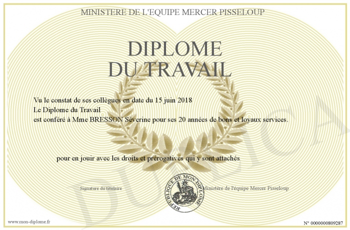 Envoyez par email votre Diplôme du Travail personalisé