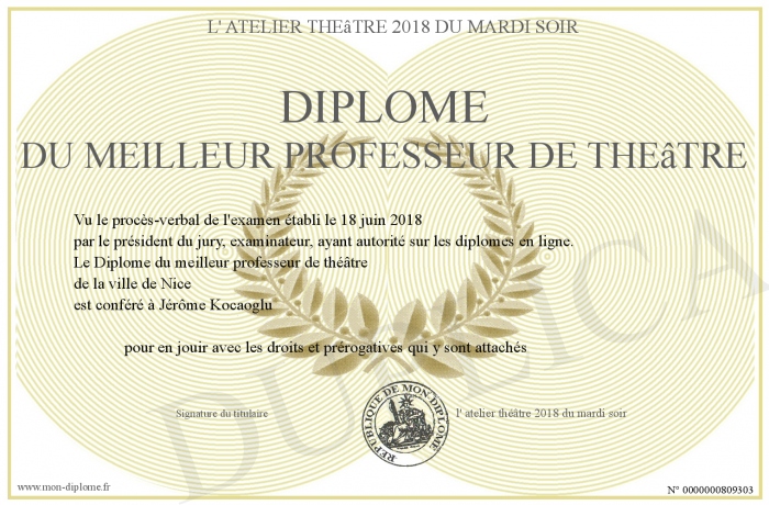 Envoyez par email votre Diplôme du meilleur professeur de théâtre personalisé