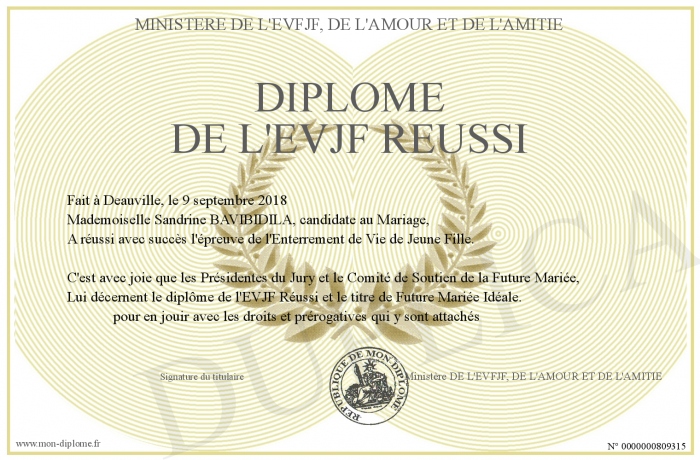 Envoyez par email votre Diplôme DE L'EVJF REUSSI personalisé