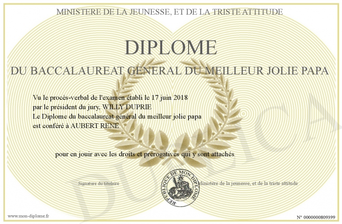 Envoyez par email votre Diplôme du baccalaureat général du meilleur jolie papa personalisé