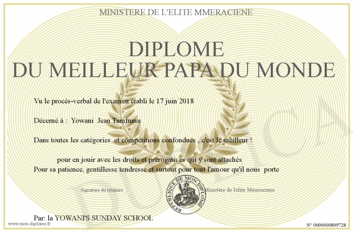 Envoyez par email votre Diplôme du meilleur papa du Monde personalisé