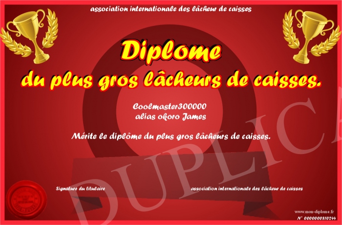 Envoyez par email votre Diplôme du plus gros lâcheurs de caisses. personalisé