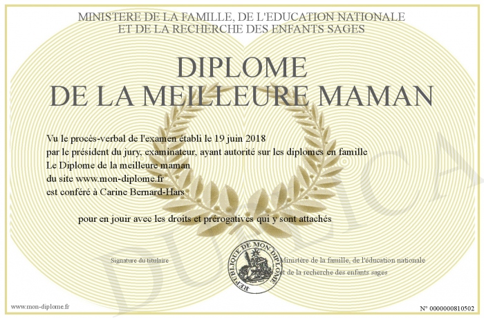 Envoyez par email votre Diplôme de la meilleure maman personalisé