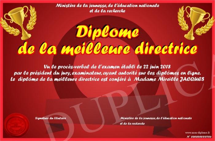 Envoyez par email votre Diplôme de la meilleure directrice personalisé