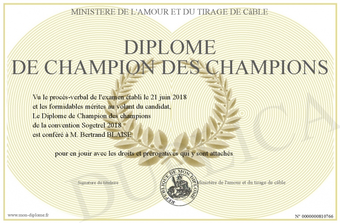 Envoyez par email votre Diplome de Champion des champions personalisé