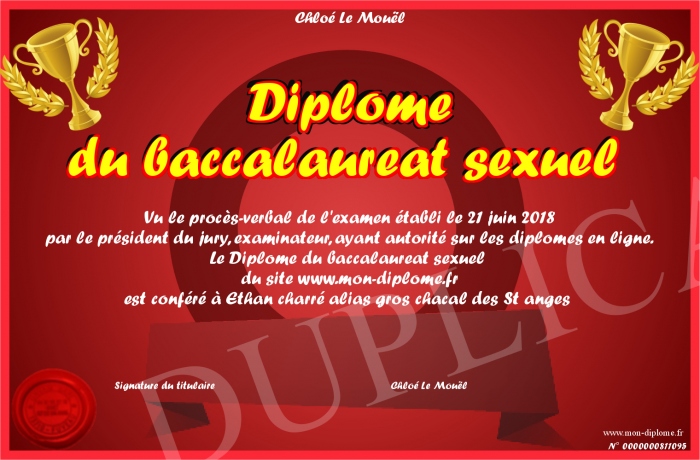 Envoyez par email votre Diplôme du baccalaureat sexuel personalisé