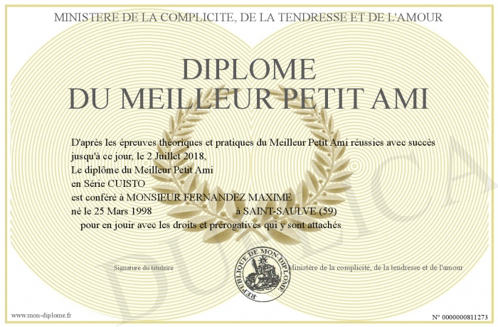 Envoyez par email votre Diplôme du meilleur petit ami personalisé