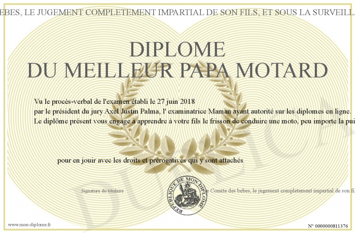Envoyez par email votre Diplôme du meilleur papa motard personalisé