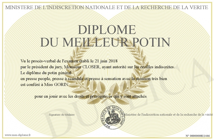 Envoyez par email votre diplôme du meilleur potin personalisé