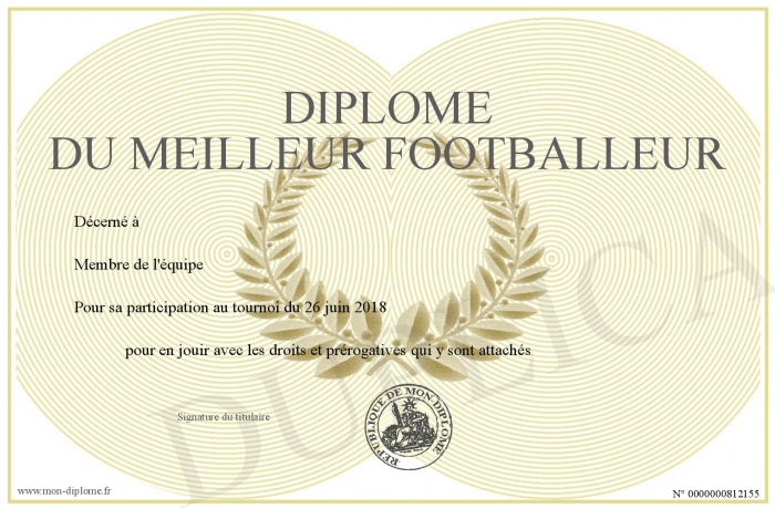 Envoyez par email votre Diplôme du meilleur footballeur personalisé