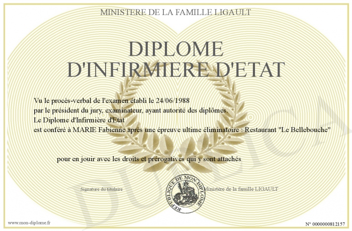 Envoyez par email votre Diplôme d'Infirmière d'Etat personalisé