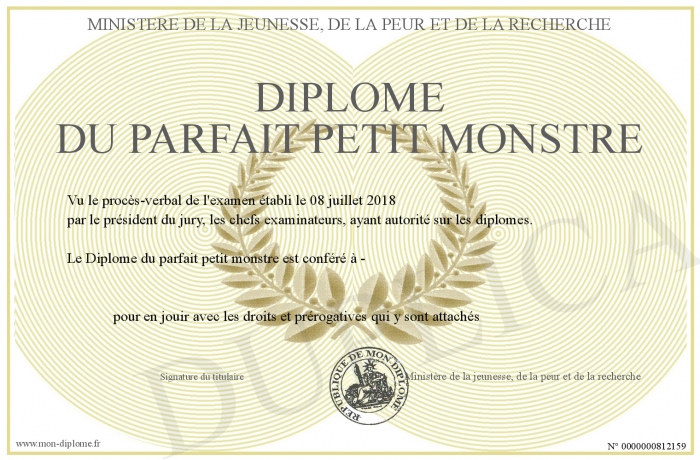 Envoyez par email votre Diplôme du parfait petit monstre personalisé