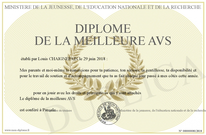 Envoyez par email votre Diplôme de la meilleure AVS personalisé