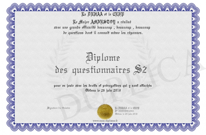 Envoyez par email votre Diplôme des questionnaires S2 personalisé