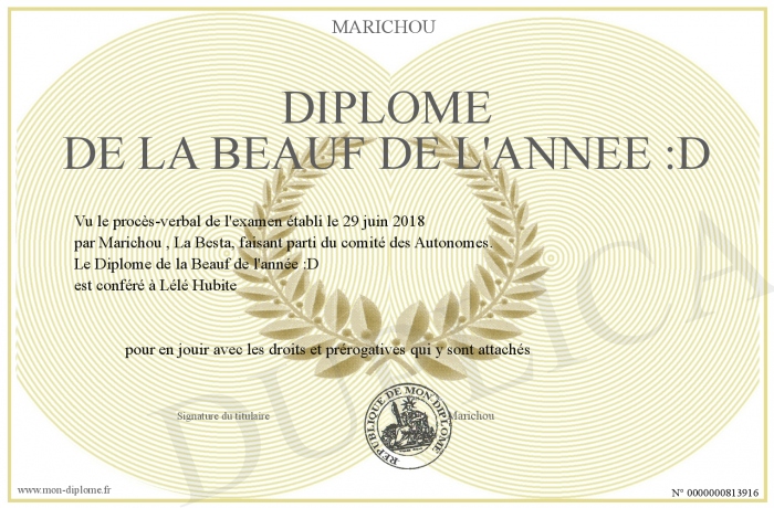Envoyez par email votre Diplôme de la Beauf de l'année :D personalisé