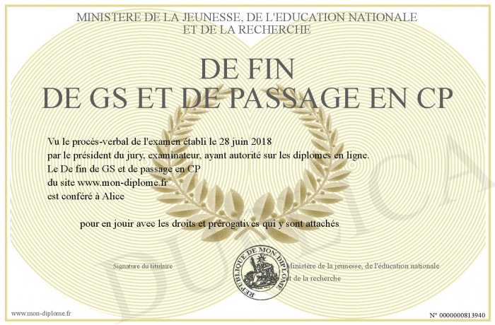 Envoyez par email votre De fin de GS et de passage en CP personalisé