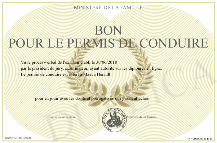 Envoyez par email votre bon pour le permis de conduire personalisé