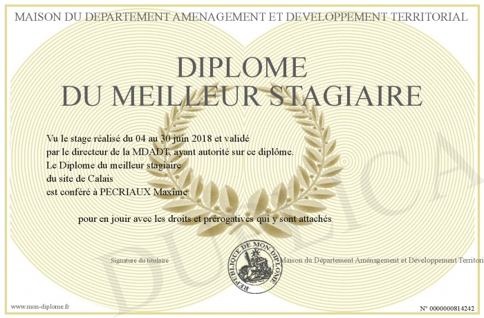 Envoyez par email votre Diplôme du meilleur stagiaire personalisé