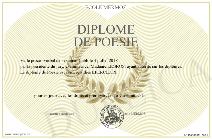 Envoyez par email votre Diplôme de Poésie personalisé