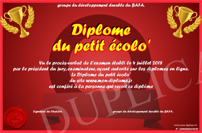 Envoyez par email votre Diplôme du petit écolo' personalisé