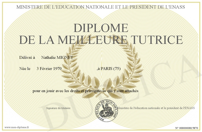 Envoyez par email votre Diplôme de la meilleure tutrice personalisé