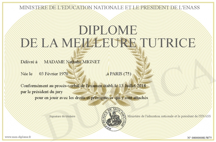 • Diplôme de la meilleure tutrice