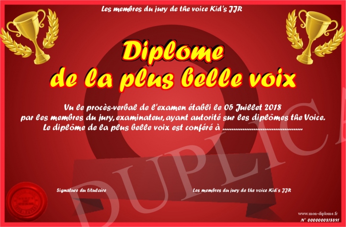 Envoyez par email votre Diplôme de la plus belle voix personalisé