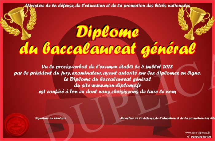 Envoyez par email votre Diplôme du baccalaureat général personalisé