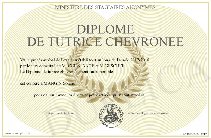 Envoyez par email votre Diplôme de tutrice chevronée personalisé