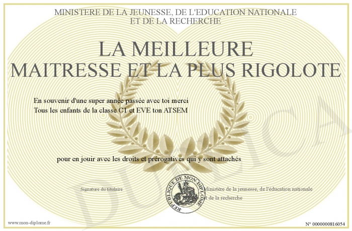 Envoyez par email votre LA MEILLEURE MAITRESSE ET LA PLUS RIGOLOTE personalisé