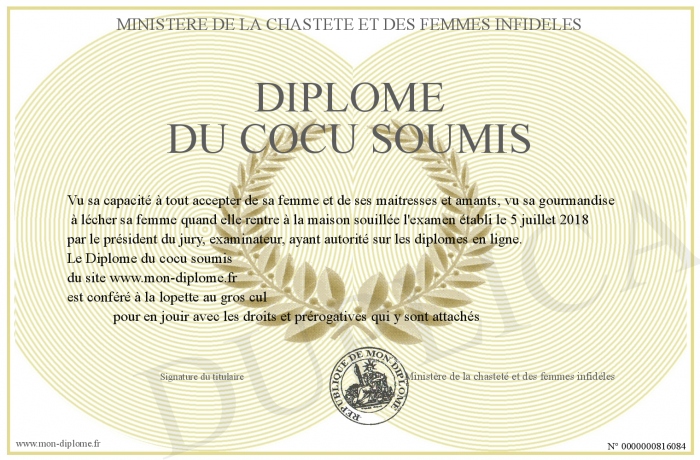 Envoyez par email votre Diplôme du cocu soumis personalisé