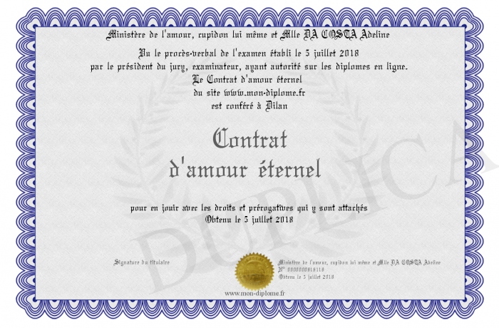 Envoyez par email votre Contrat d'amour éternel personalisé