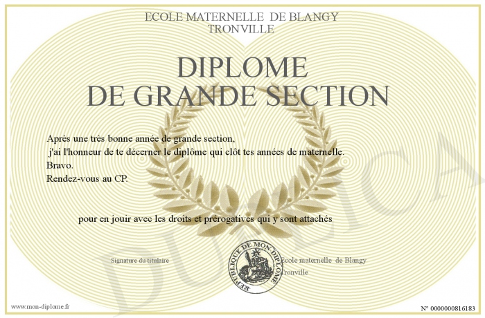 Envoyez par email votre Diplôme de Grande Section personalisé