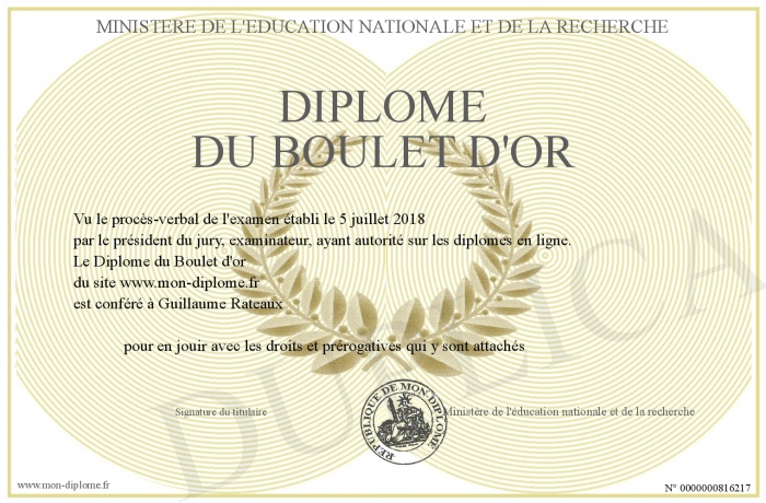 Envoyez par email votre Diplôme du Boulet d'or personalisé