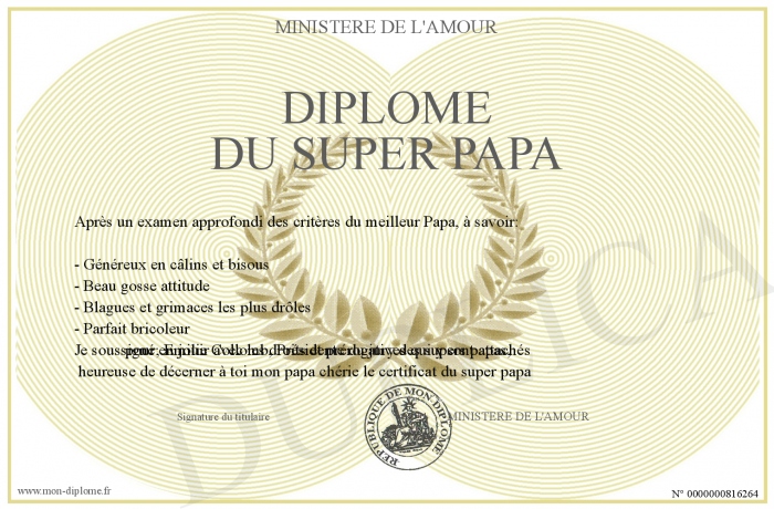 Envoyez par email votre DIPLOME DU SUPER PAPA personalisé