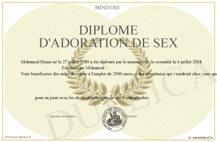 Envoyez par email votre Diplome D'adoration de sex personalisé