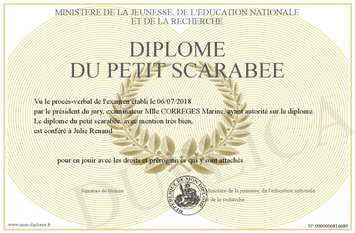 Envoyez par email votre Diplôme du petit scarabée personalisé