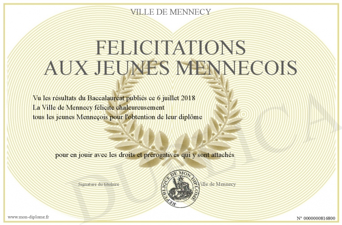 Envoyez par email votre Félicitations aux jeunes Mennecois personalisé