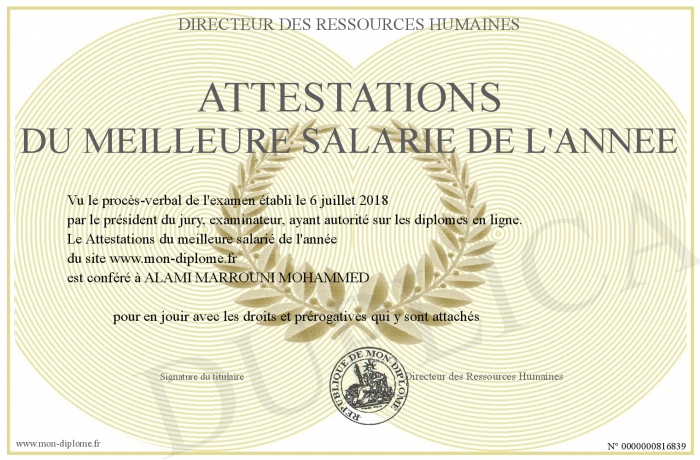 Envoyez par email votre Attestations du meilleure salarié de l'année personalisé