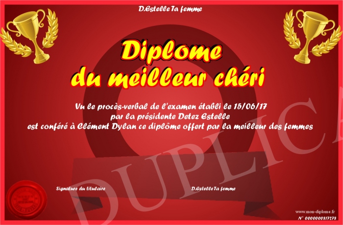 • Diplome du meilleur chéri