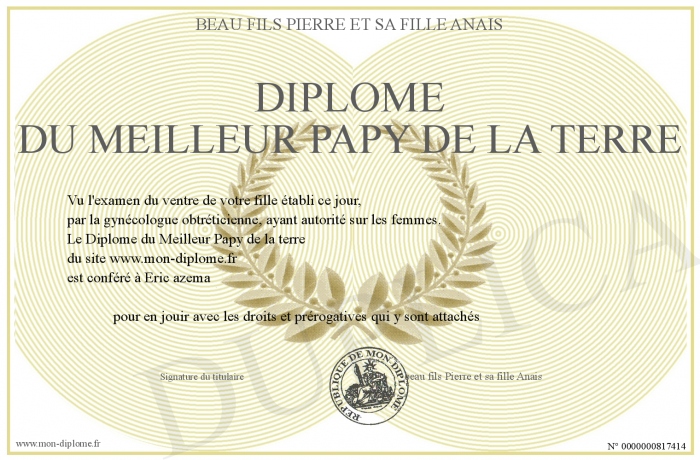 Envoyez par email votre Diplome du Meilleur Papy de la terre personalisé