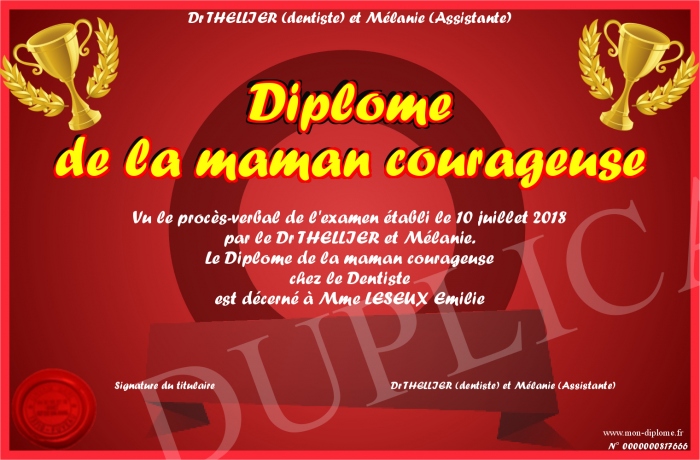 Envoyez par email votre Diplôme de la maman courageuse personalisé