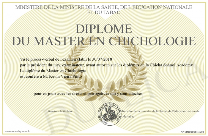 Envoyez par email votre Diplôme du MASTER en chichologie personalisé
