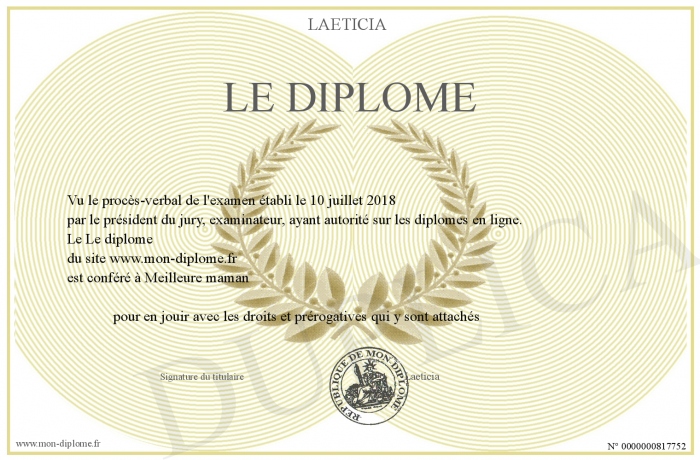 Envoyez par email votre Le diplôme personalisé
