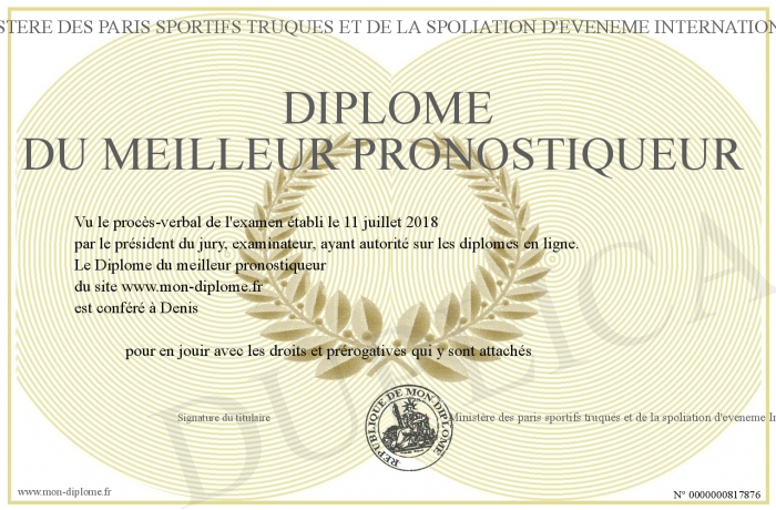 Envoyez par email votre Diplôme du meilleur pronostiqueur personalisé