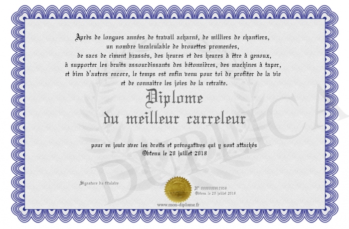 Envoyez par email votre Diplôme du meilleur carreleur personalisé