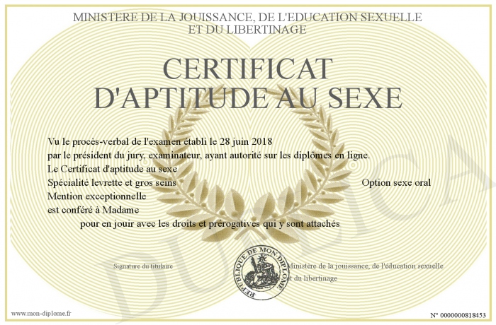 Envoyez par email votre Certificat d'aptitude au sexe personalisé