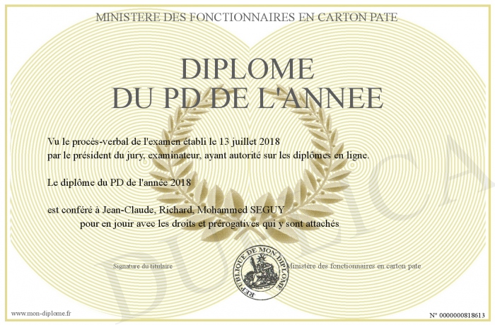 Envoyez par email votre Diplôme du PD de l'année personalisé