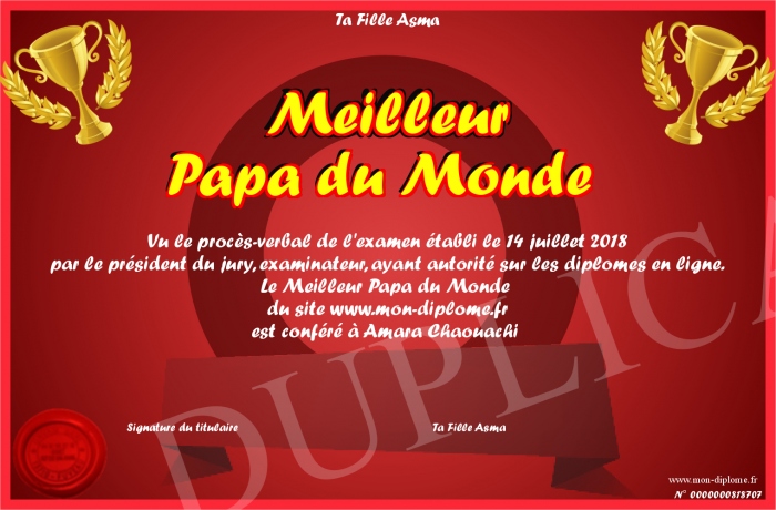 Envoyez par email votre Meilleur Papa du Monde personalisé